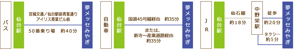 | ① 仙台駅 ⇔ 夢メッセみやぎ 路線バス増便運行! | |||